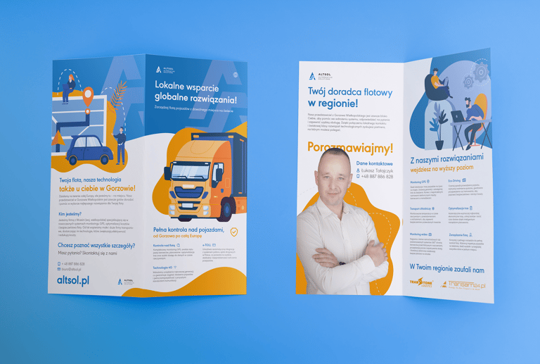 Współpraca z firmą Alternative Solutions miała na celu opracowanie ulotki promującej zakres jej działalności oraz prezentującej stosowane technologie i obszary działania.